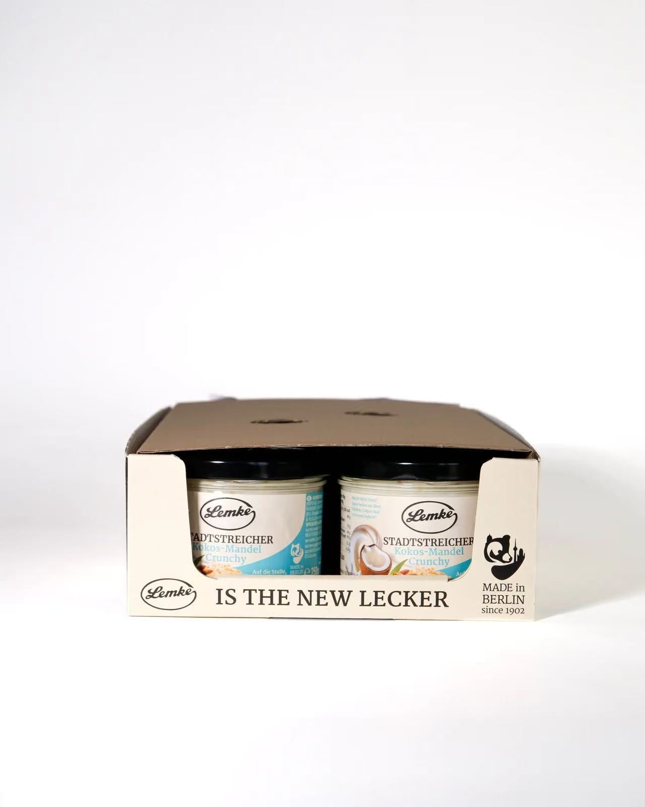 Lemke - Stadtstreicher Kokos Mandel-Crunch - Kokoscreme mit Mandelstückchen - 250g (8 Stück je Karton)